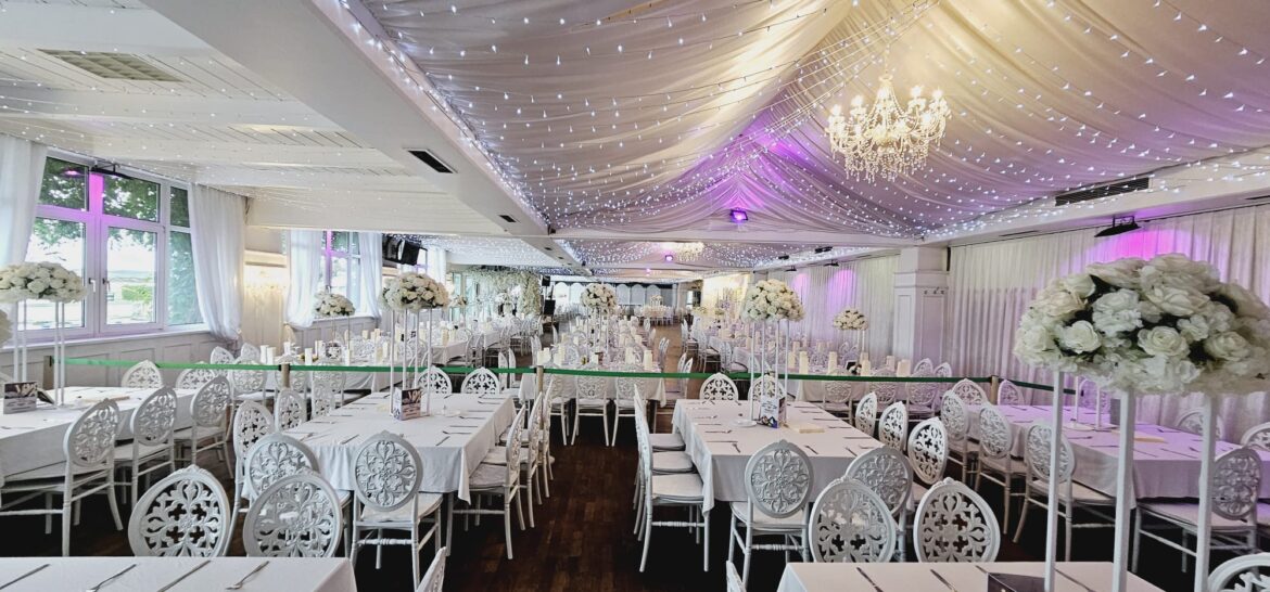 Unser eleganter Saal bietet Platz für bis zu 530 Personen, jedoch begrenzen wir die Gästezahl bewusst auf 500 Personen für höchsten Komfort.